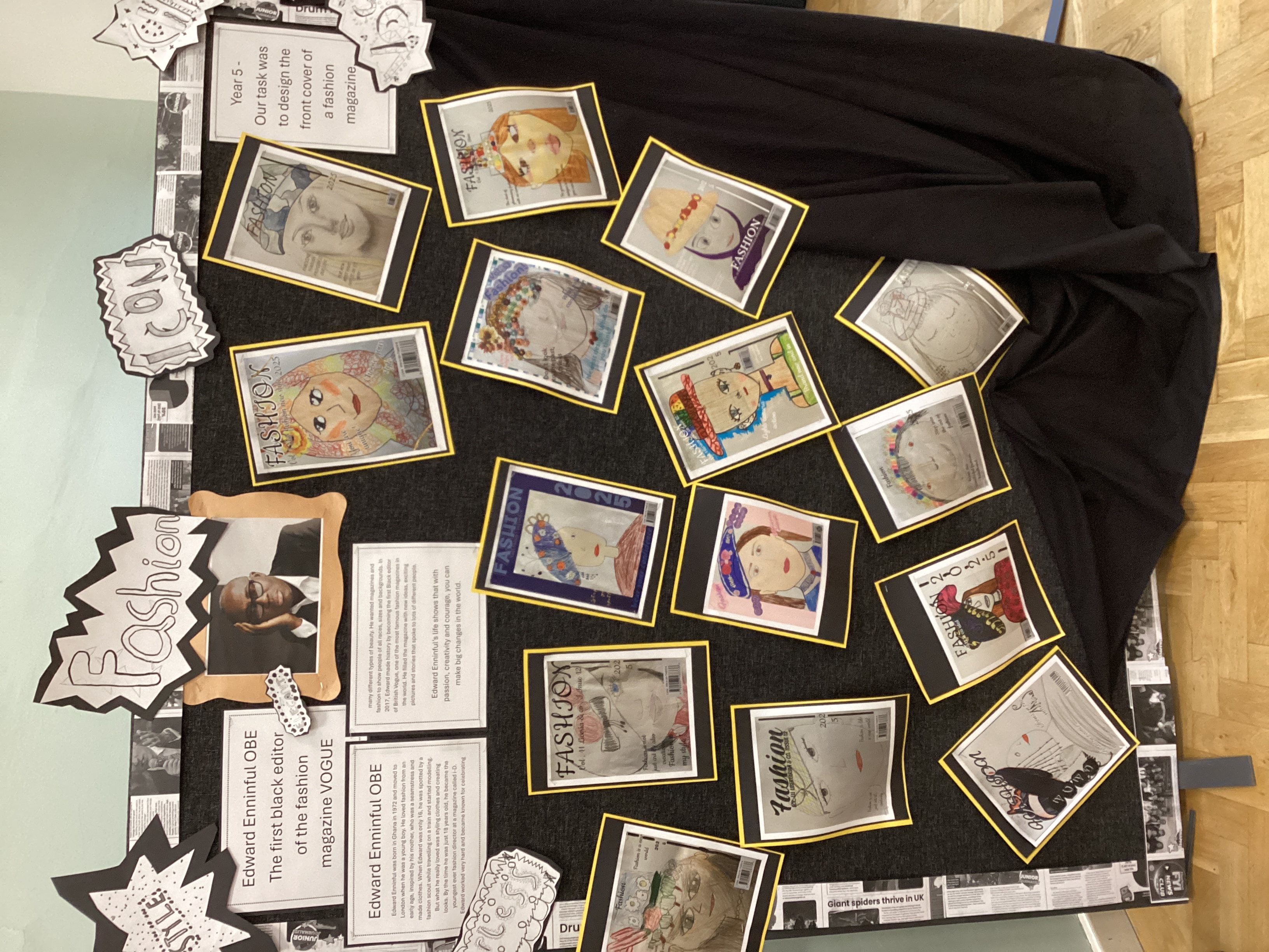 To mark Black History Month, Year Five girls learned about Edward Enninful, the first Black editor of British Vogue. Inspired by his story and his love of creativity and diversity in fashion, the girls designed their own fashion magazine front covers, each featuring a unique piece of headwear they created themselves. Their designs celebrate individuality, culture and imagination — just like Edward’s work in the fashion world.