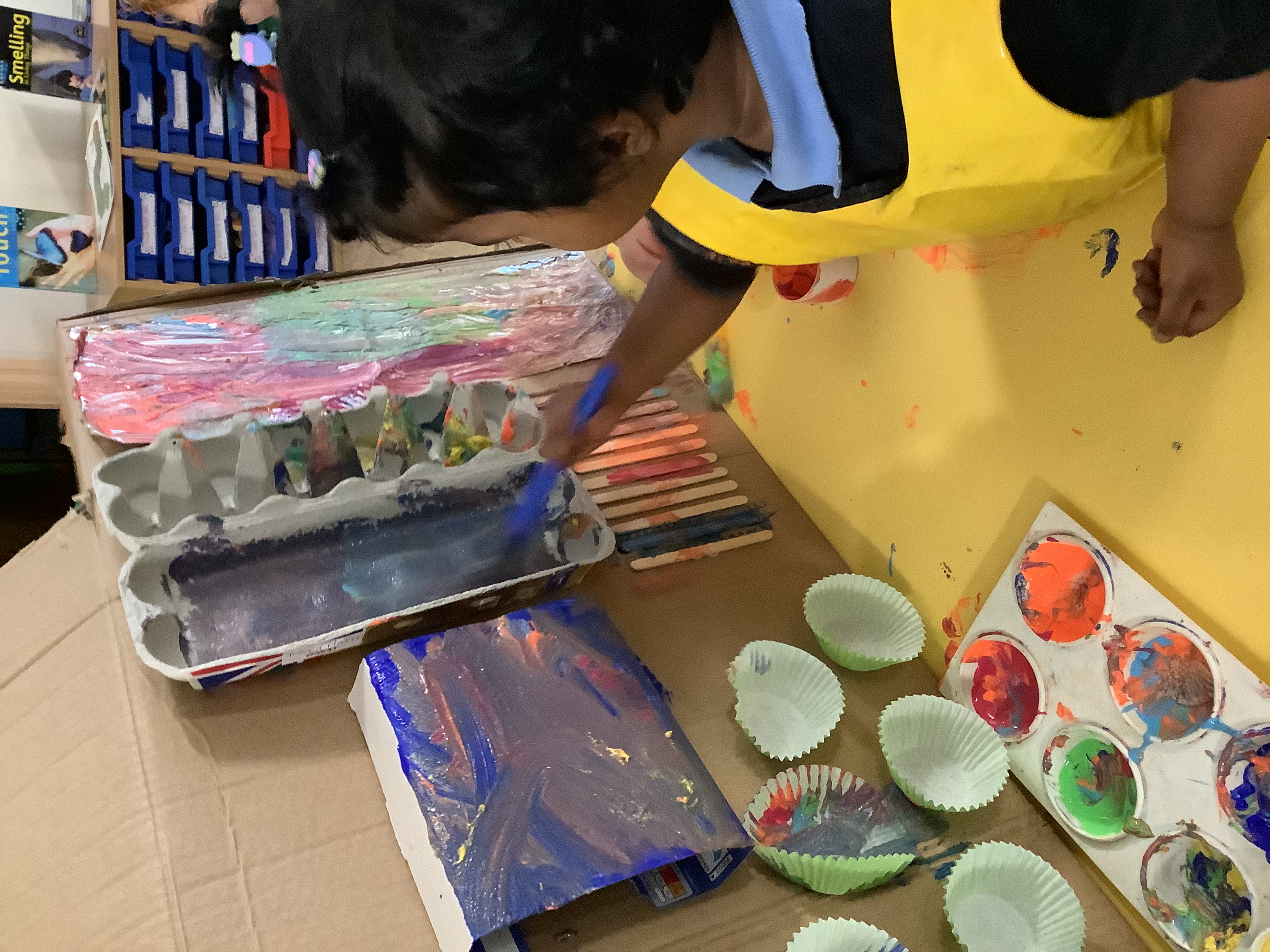 The Nursery girls worked collaboratively as they combined their efforts on some junk-model artwork! They began by adding paint to the different materials, using both big and small strokes to add vibrant colours. Afterwards, they added collage pieces which enhanced the 3D effect wonderfully. This encouraged teamwork and communication as the girls shared their ideas as well as developing their fine motor skills and creativity. The finished piece is proudly displayed in the Nursery room for all to see!